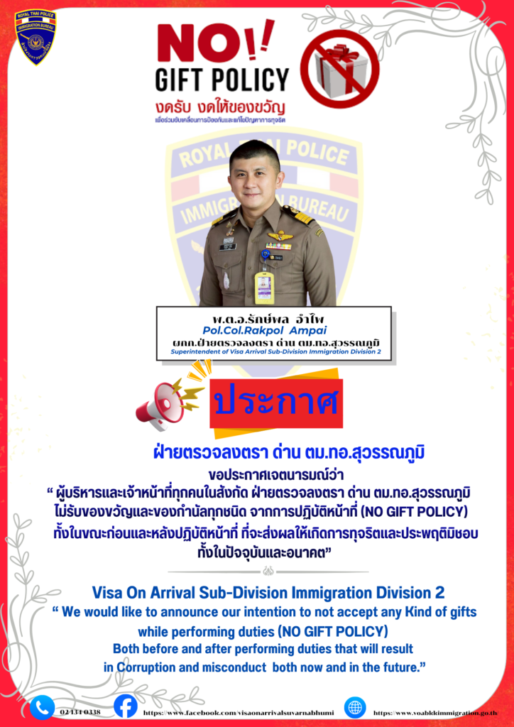 Title of the document 🛃 ฝ่ายตรวจลงตรา ด่าน ตม.ทอ.สุวรรณภูมิ ยินดีต้อนรับค่ะ🛃 ข่าวสารและกิจกรรมล่าสุด อ่านทั้งหมด กิจกรรมจิตอาสา “เราทำความดี เพื่อชาติ ศาสน์ กษัตริย์”admin่6 มีนาคม , 2026 เมื่อวันที...Read More ประชุมบริหารราชการ ฝ่ายตรวจลงตราฯ ประจำเดือน ก.พ.69admin่25 กุมภาพันธ์ , 2026 เมื่อวันที...Read More กิจกรรมจิตอาสา “เราจะทำความดี เพื่อชาติ ศาสน์ กษัตริย์”admin่20 กุมภาพันธ์ , 2026 เมื่อวันที...Read More ประชุมบริหารราชการฝ่ายตรวจลงตรา ประจำเดือน ม.ค.69admin่29 มกราคม , 2026 เมื่อวันที...Read More Load More กำลังโหลด… ฝ่ายตรวจลงตราด่าน ตม.ทอ.สุวรรณภูมิ999 ตำบล หนองปรือ อำเภอ บางพลีจังหวัด สมุทรปราการ10540 จุดปฏิบัติฝ่ายตรวจลงตรา : 02 1340 338 ธุรการฝ่ายตรวจลงตรา : 02 1340 342 Email : voaimm2@gmail.com facebook : VISA on Arrival Suvarnabhumi