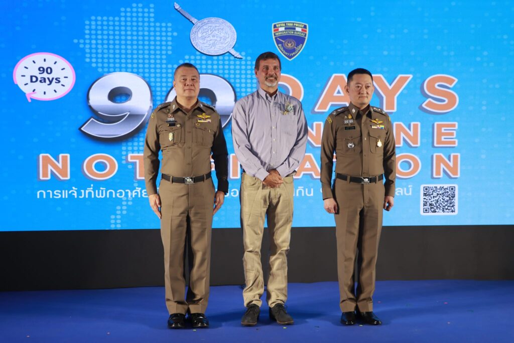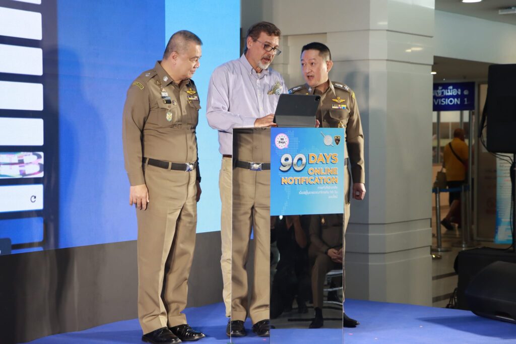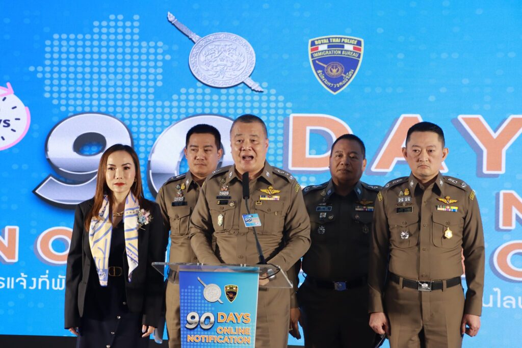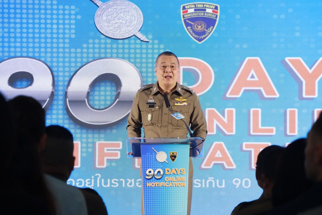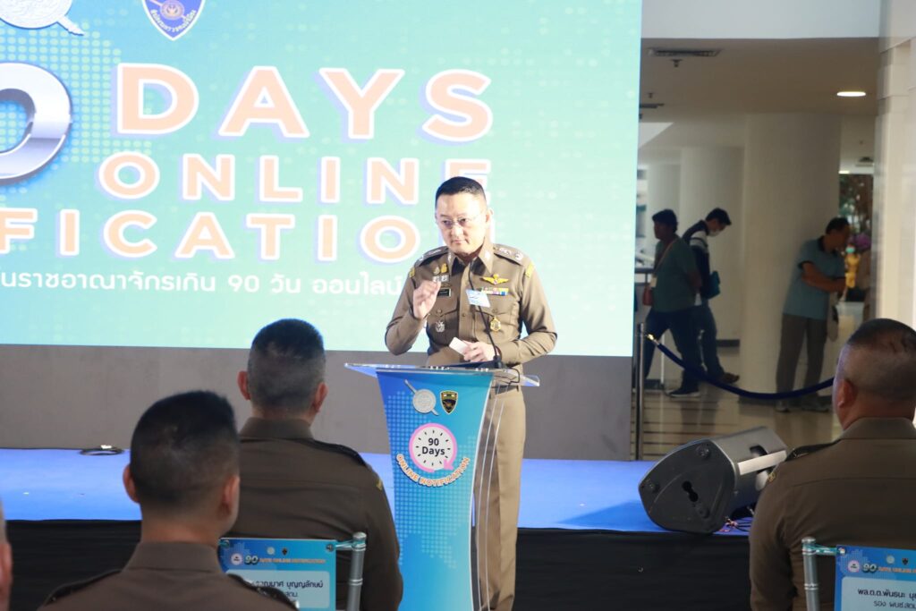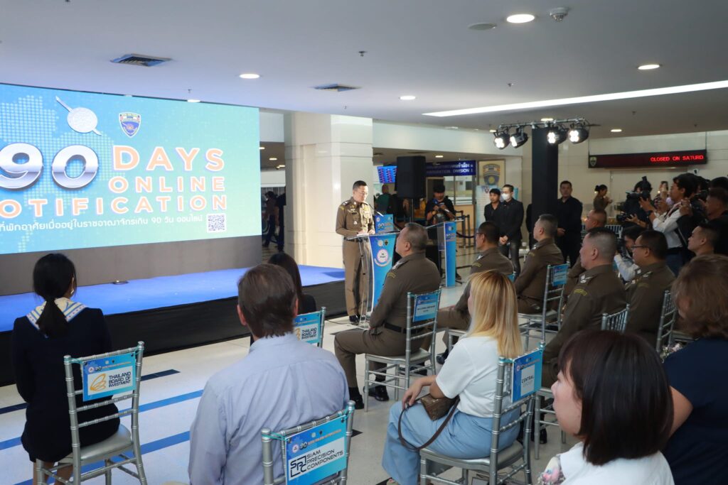 วันนี้ (22 ม.ค. 67) เวลา 10.00 น. พล.ต.ท.อิทธิพล อิทธิสารรณชัย ผบช.สตม. พร้อมด้วย รอง ผบช.สตม. ผบก. ในสังกัด สตม. และผู้แทนจากหน่วยงานที่เกี่ยวข้อง เปิดตัวบริการ 90 days Online Notification การแจ้งที่พักอาศัย เมื่ออยู่ในราชอาณาจักรเกิน 90 วัน ออนไลน์ ณ บก.ตม.1 ศูนย์ราชการเฉลิมพระเกียรติ 80 พรรษา 5 ธันวาคม 2550 อาคาร B (ชั้น 2 ด้านทิศใต้) ถนนแจ้งวัฒนะ แขวงทุ่งสองห้อง เขตหลักสี่ กรุงเทพมหานคร