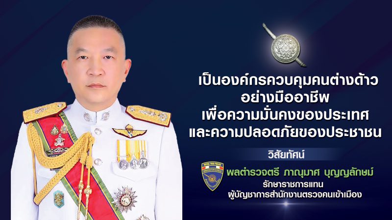 วิสัยทัศน์ ท่านพลตำรวจตรี ภาณุมาศ บุญญลักษณ์ รองผู้บัญชาการฯ รักษาราชการแทน ผู้บัญชาการ สำนักงานตรวจคนเข้าเมือง